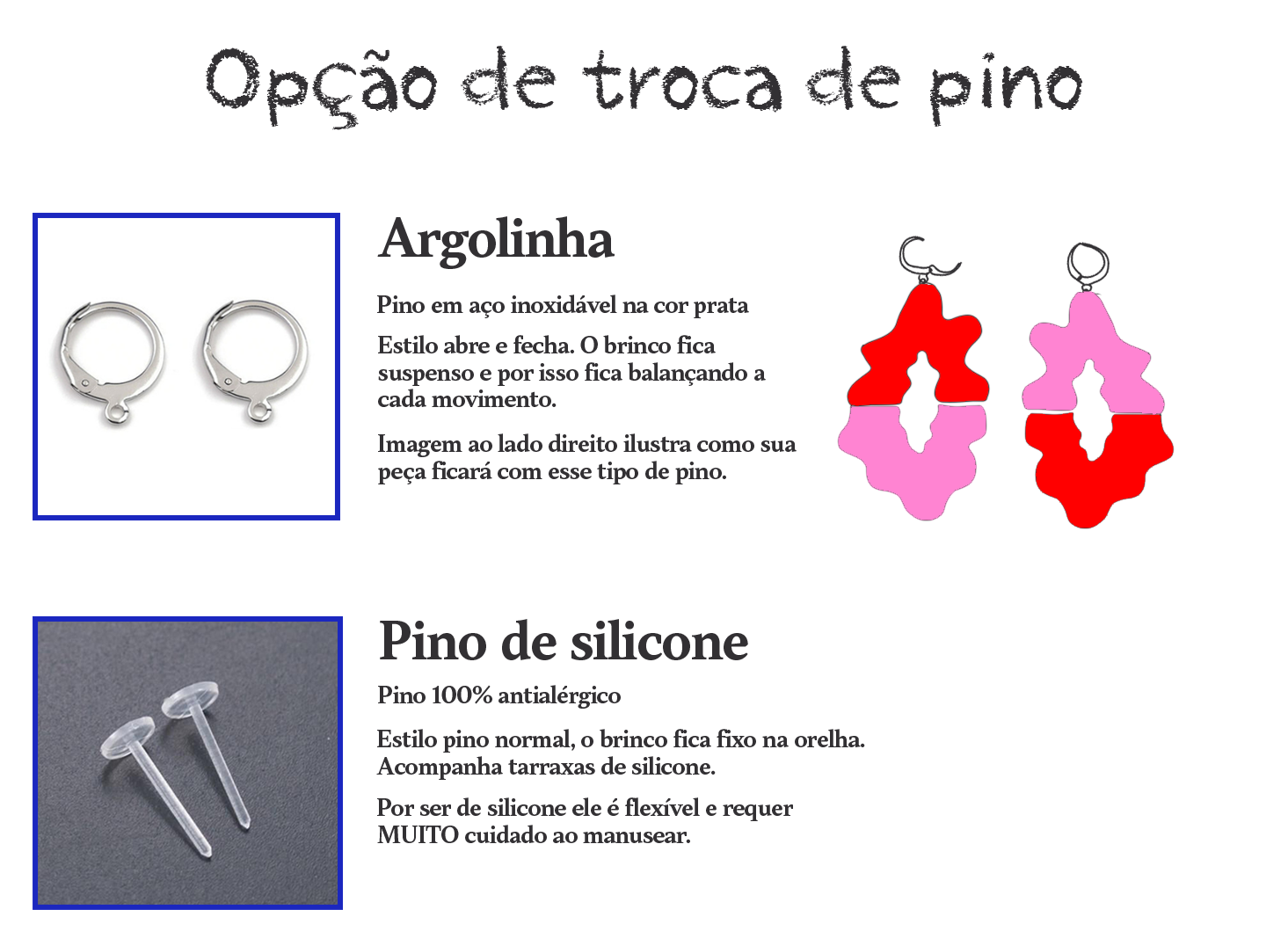 Você pode pedir para alterar o tipo de pino do seu brinco sem nenhum custo adicional.